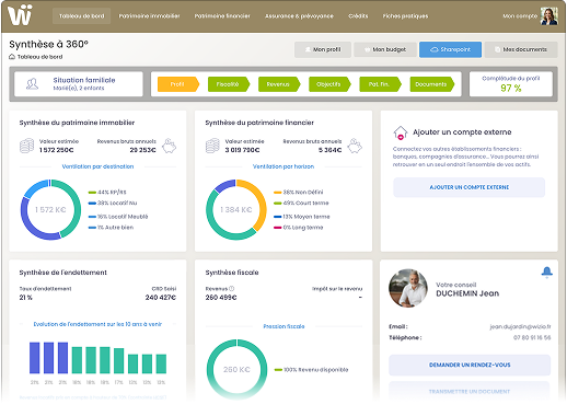 Vos clients accèdent à leur patrimoine, mettent à jour leurs données et suivent leurs investissements en temps réel.