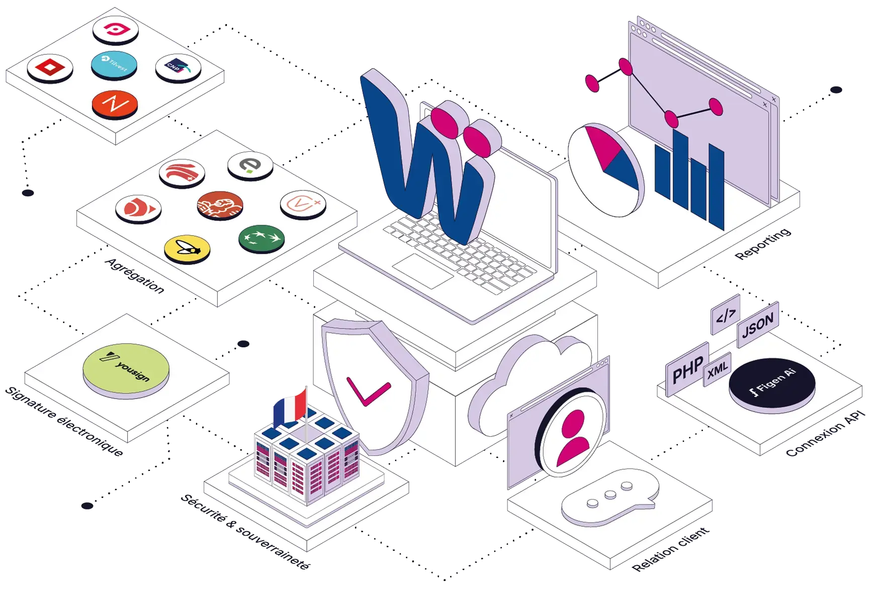 Voyez Wizio comme la colonne vertébrale de votre activité patrimoniale. Son architecture modulaire et interopérable permet de connecter facilement des outils internes ou externes via API et de structurer un écosystème sur mesure. Déployée en marque blanche, la plateforme s’adapte à chaque organisation et accompagne sa croissance. Le modèle tout inclus apporte une visibilité totale sur les coûts, sans surprise en fin de mois, et permet de réaliser en moyenne 50 % d’économies par rapport à des solutions fragmentées, tout en gagnant en agilité et en scalabilité.